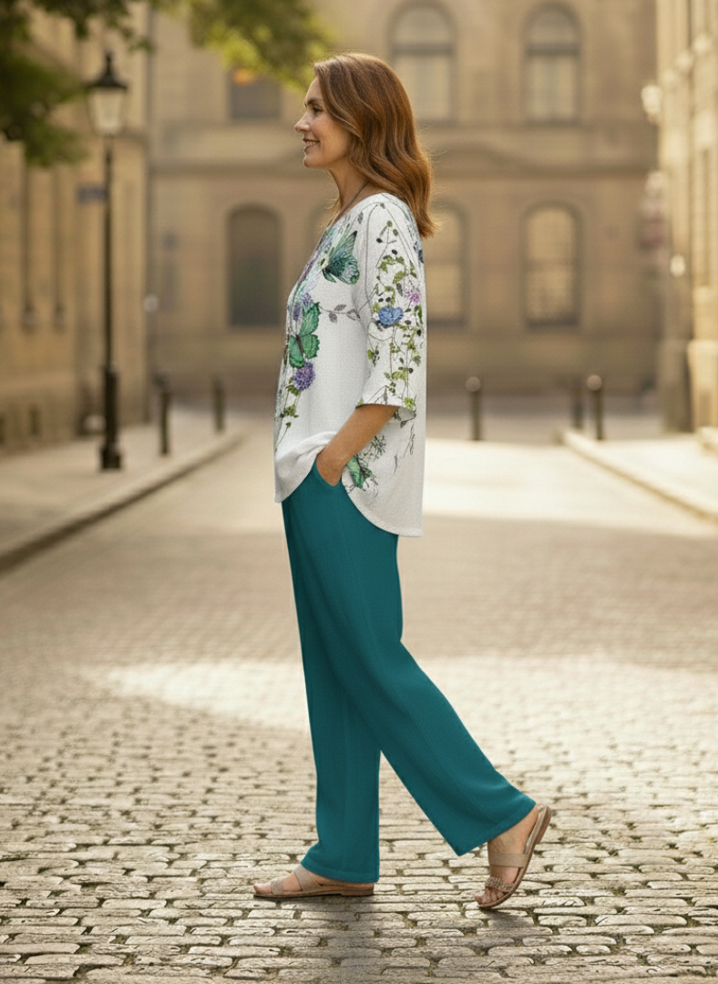A lively co-ord set blending vibrant butterfly details with relaxed elegance for instantly polished everyday style.