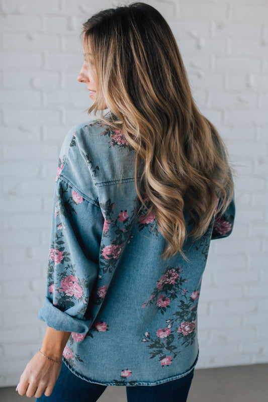 Floral Print Denim Top